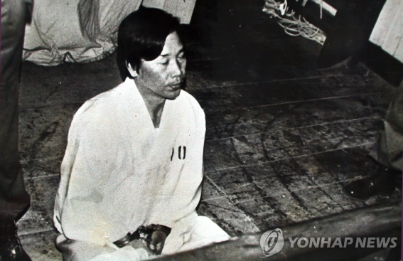 | ▲ 김재규가 교수대 앞에서 눈을 감은 채 마지막 순간을 맞는 모습 (사진=연합뉴스) |