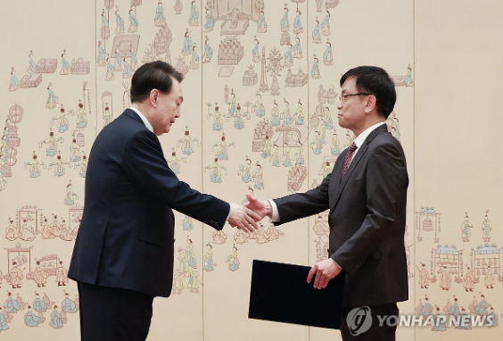 | ▲ 윤석열과 최상목 대통령 권한대행 . 사진은 2024.1.3 경제부총리 겸 기획재정부 장관 임명장 수여 (사진=연합뉴스) |