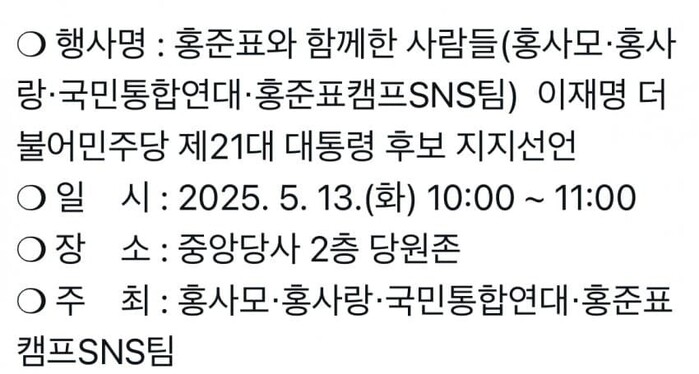 홍사모,홍준표 캠프 SNS팀 등 내일 '이재명 지지선언' 예고