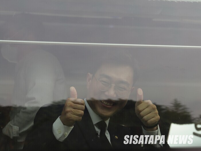 | ▲ 후보 당시 자신의 기호였던 '3' 을 만들며 환하게 웃는 박찬대 최고위원 |