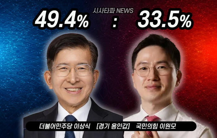 4‧10 총선 수도권 최대 승부처 중 하나로 주목받는 용인시 갑 지역구에서 더불어민주당 이상식 후보가 국민의힘 이원모 후보를 오차범위 밖에서 앞지르고 있는 것으로 나타났다.