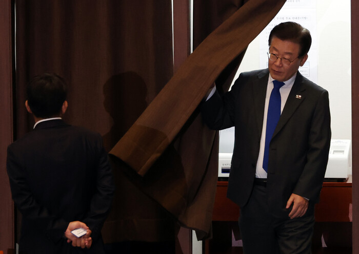 | ▲ 상임위원장 투표를 마친 이재명 대표 (사진=연합뉴스) |