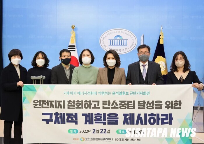 22일 양이원영 의원은 전국시민발전현동조합연합외 50여개 시민.환경단체와 함께 "기후위기대응과 에너지전환에 역행하는 공약" 을 제시하는 "윤석열 후보 규탄 기자회견"에 참여했다.