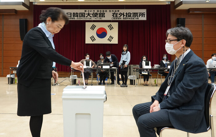 | ▲ 도쿄 총영사관에 마련된 재외투표소에서 투표하고 있다.(사진=연합뉴스) |