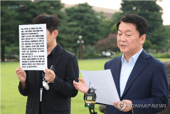 | ▲ 국민의힘 안철수 의원이 29일 서울 여의도 국회 상징석 앞에서 당대표 선거 출마 선언, 내란 특검 관련 기자회견을 하고 있다. 2025.7.29 (사진=연합뉴스) |