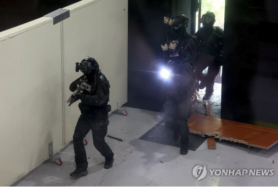 | ▲ 특수작전 및 대테러 훈련하는 제707 특수임무단 대테러 요원들 (사진=연합뉴스) |
