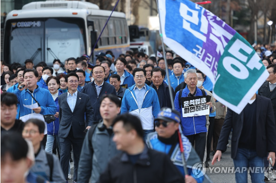 | ▲ 15일 윤석열 파면 촉구 민주당 도보행진 (사진=연합뉴스) |