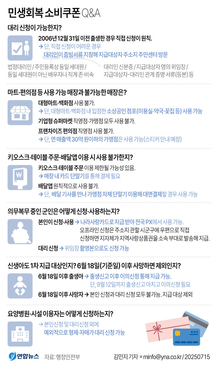 자세한 문의는 '민생회복 소비쿠폰 전담 콜센터'(☎ 1670-2525)와 '국민콜 110' 에서 맞춤형 상담을 받을수 있다.