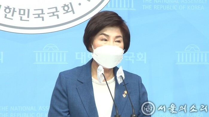 | ▲전해숙의원 12일 오전 국회 소통관 코로나관련 기자회견 |