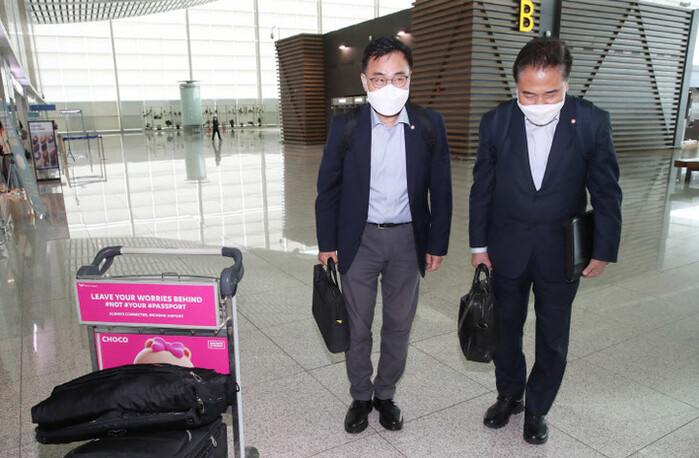 | ▲ 출처;연합뉴스(국민의힘 김진,최형두의원 인청공항 출국) |