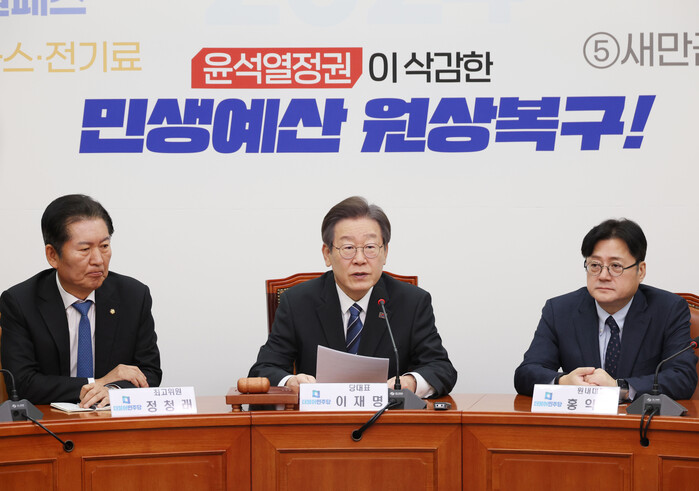 | ▲더불어민주당 최고위에서 발언하는 이재명 (사진=연합뉴스) |