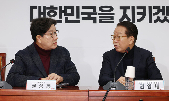 | ▲ 국민의힘 권성동 원내대표와 권영세 비대위원장 (사진=연합뉴스) |