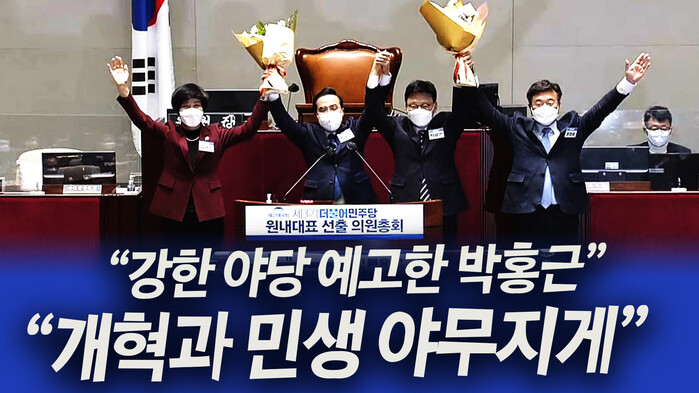 더불어민주당 신임 원내대표에 3선의 박홍근 의원(서울 중랑구을)이 24일 선출됐다. 박홍근 신임 원내대표는 이날 열린 원내대표 결선 투표에서 전체 166표 중, 최다득표(무효표 제외)를 얻어 172석 거대 정당의 새 원내사령탑이 됐다.