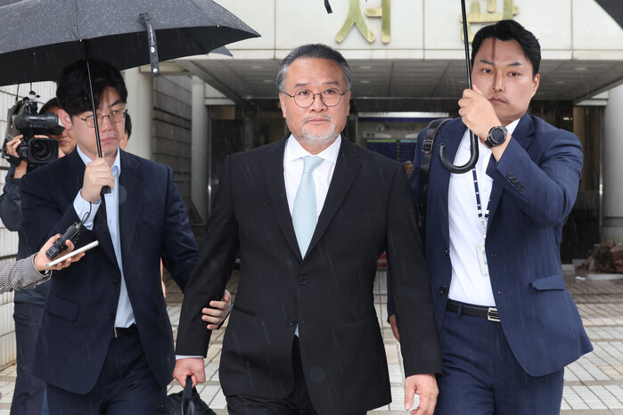 | ▲ 주가조작 의혹으로 김건희 관련 의혹을 수사하는 민중기 특별검사팀의 조사를 받은 이일준 삼부토건 회장이 17일 서울중앙지법에서 구속 전 피의자 심문(영장실질심사)을 마친 뒤 법정을 나서고 있다. 2025.7.17 (사진=연합뉴스) |