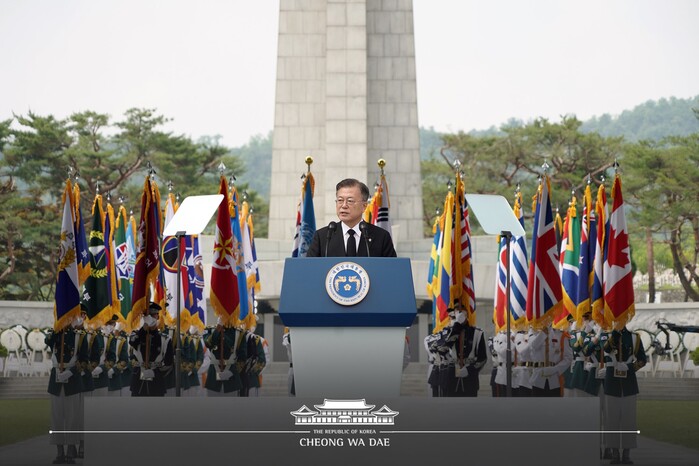문 대통령의 현충일 추념식 참석은 문재인 정부 들어 이번이 다섯 번째로, 임기 동안 매년 참석했다. 그간 현충일 추념식은 서울-대전 현충원에서 번갈아 개최했다. 올해는 서울현충원 순서로, 국립대전현충원과 부산UN기념공원에서 열린 추념 행사 3원 연결을 통해 순국선열 및 호국영령, UN참전용사에 대한 추모의 의미를 더했다.