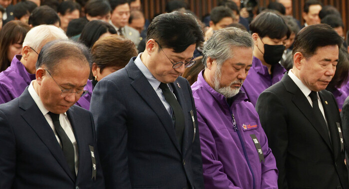 | ▲국회 이태원참사 추모제에 참석한 국회의장과 여야 대표들 (사진=연합뉴스) |