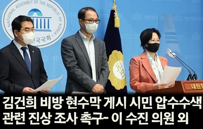 - "지난달 29일, 인천중부경찰서는 당선자의 부인 김건희씨 수사촉구 현수막 게시자 압수