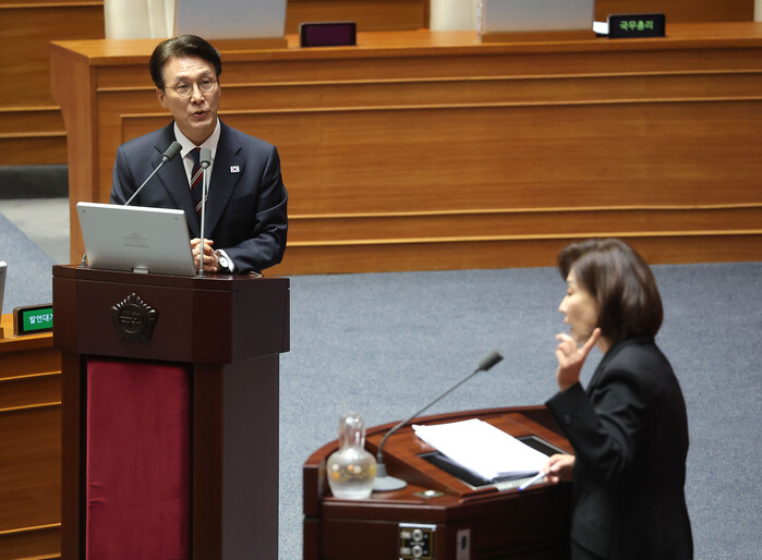 | ▲ 김민석 국무총리가 18일 교육·사회·문화 분야 대정부질문이 열리는 국회 본회의장에서 국민의힘 나경원 의원의 질문에 답하고 있다. 2025.9.18 (사진=연합뉴스) |