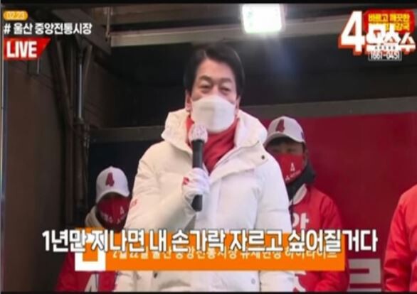 | ▲ 안철수, 지난 대선때 울산 중앙전통시장에서 윤석열 찍으면 1년만 지나면 손가락 자르고 싶어질거다"발언을 해 화제를 모았다. |