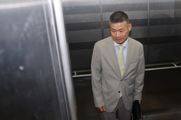 | ▲ 김동혁 전 국방부 검찰단장이 15일 피의자 신분으로 조사받기 위해 서울 서초구 순직해병특별검사팀에 출석하고 있다. 2025.8.15 (사진=연합뉴스) |