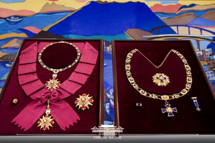 유정현 외교부 의전장은 무궁화대훈장에 대해 “우리나라 최고의 훈장으로 양국 관계 증진이나 세계 평화, 세계 안보에 기여한 정상께 수여해 드리는 것”이라며 “태극무늬는 대한민국을 상징하고 봉황은 대통령, 빨간 보석은 어려움을 극복한 결실, 빗살무늬는 국위선양을 의미한다”고 설명했다. 두케 대통령은 “두 나라의 관계 증진의 결의를 담아 받도록 하겠다”고 화답했다.