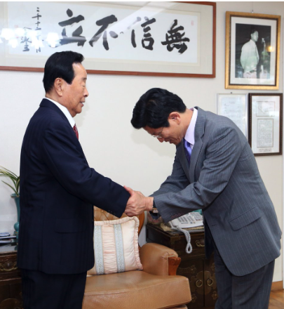| ▲ 2012.7.11 당시 새누리당 대권 경선 참여 의사를 밝힌 김문수 경기지사가 김영삼 자택에서 고개를 조아리고 있다. (사진=연합뉴스) |