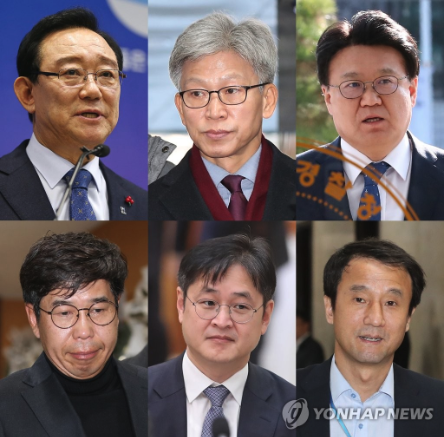 | ▲ 2020.1.29 검찰이 송철호 울산시장(왼쪽 윗줄부터)과 송병기 전 울산시 경제부시장, 황운하 전 울산지방경찰청장, 백원우 전 청와대 민정비서관, 박형철 전 반부패비서관, 한병도(53) 전 청와대 정무수석 등 13명을 재판에 넘겼다.(사진=연합뉴스) |