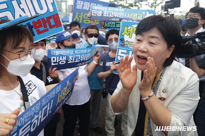 | ▲ 지지자들에게 열심히 홍보중인 서영교 후보 |