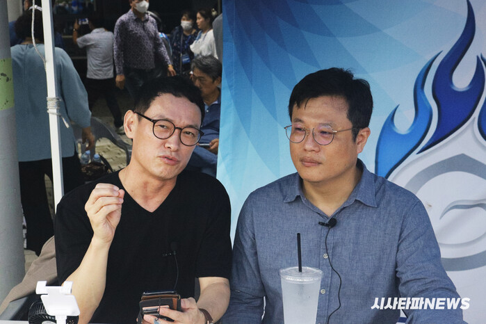| ▲ 현장 중계방송 중인 이종원PD, 곽동수 정치 평론가 |