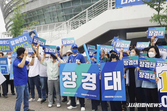 | ▲ 장경태를 응원하는 열띤 지지자들 |
