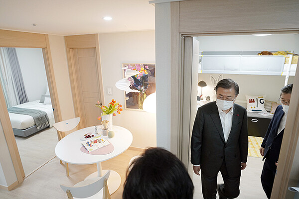 | ▲문재인 대통령이 지난해 12월 경기 화성시 동탄 공공임대주택에서 내부를 살펴보고 있다.(사진=청와대) |