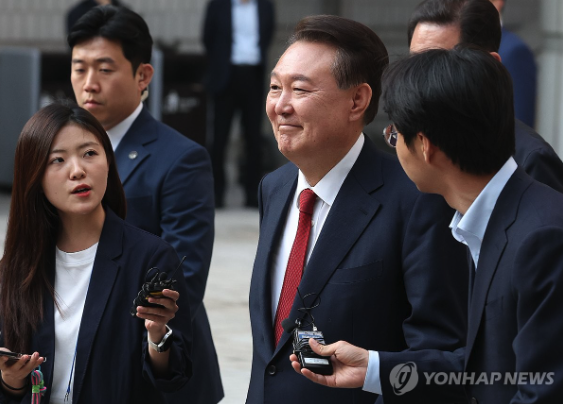 | ▲ 서울중앙지방법원에서 열린 내란 우두머리 혐의·직권남용 권리행사 방해 혐의 사건 5차 공판에 출석하는 윤석열. 2025.5.26 (사진=연합뉴스) |