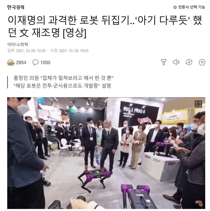 일부 언론이 '이재명이 로봇박람회에서 로봇을 일부러 넘어뜨렸다'고 비난합니다.