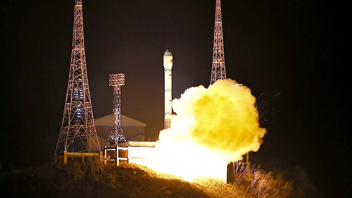 | ▲ 북한은 21일 오후 10시 42분 28분께 평안북도 철산군 서해위성발사장에서 신형위성운반로케트 '천리마-1'형에 정찰위성 '만리경-1'호를 탑재해 성공적으로 발사했다.(사진=연합뉴스) |