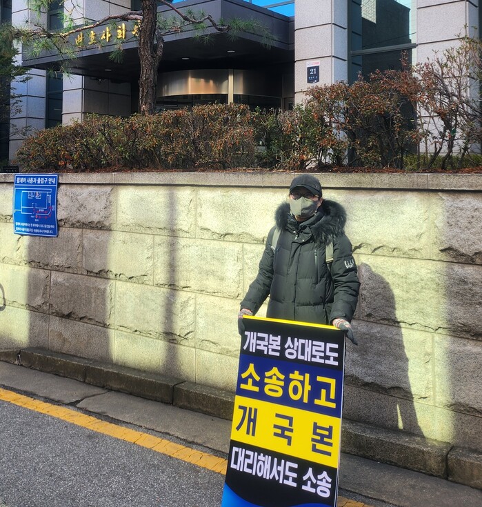 | ▲변호사회관 앞에서 1인 시위중인 개혁국민운동본부 회원 (사진=개국본) |