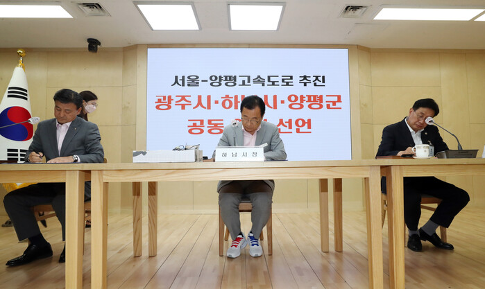 원희룡 국토교통부 장관이 백지화를 선언한 서울-양평 고속도로 사업의 재추진을 위해 경기 광주시와 하남시, 양평군이 힘을 모으기로 했다.