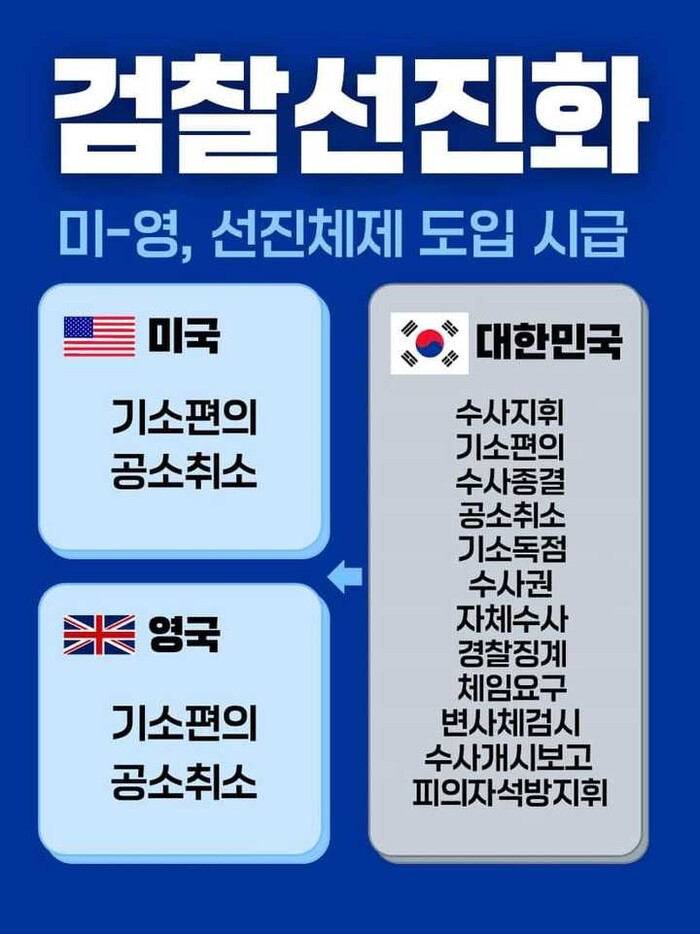 우리나라만 검찰이 기소권과 수사권 전부를 가지고 행사함으로써 국민에 피해.
