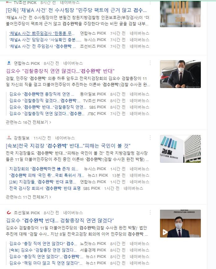 | ▲ 많은 언론이 검찰의 기소권과 수사권 분리를 “검찰정상화” 란 표현을 쓰는 곳 없어, “수사권 완전한박탈(검수완박)” 에 검찰이 반발한다는 기사를 내고 있다. |