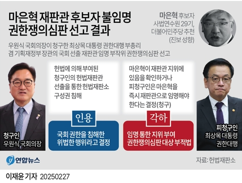한편 최 권한대행은 조만간 마 후보자 임명 절차에 돌입할 것으로 예상된다. 최 대행이 마 후보자를 임명하려면 국무회의를 소집해야 한다.