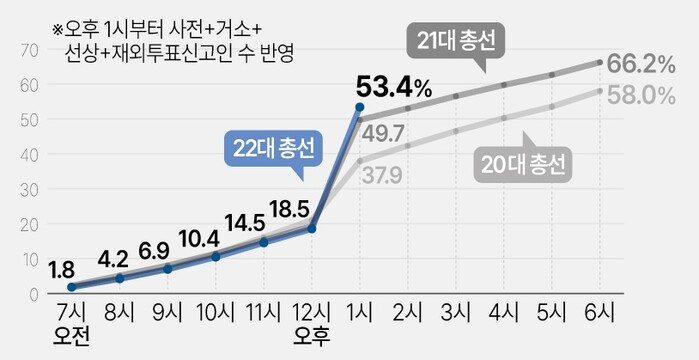 | ▲총선 시간대별 투표율 (그래픽=연합뉴스) |