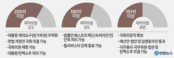 | ▲국회 200석, 180석, 151석 의석수에 따른 권한 차이 (사진=연합뉴스) |