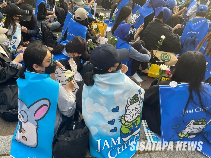 | ▲ 검찰개혁 사망 상징으로 국화꽃을 들고 있는 시민들 |