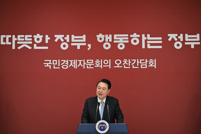 | ▲국민경제자문회의 위원들과 오찬간담회 진행하는 윤석열 대통령 (사진=연합뉴스) |