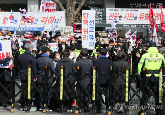 | ▲ 18일 윤석열 파면 촉구 청원 기자회견하는데 야유 보내며 헌재 출입 방해한 극우들 (사진=연합뉴스) |