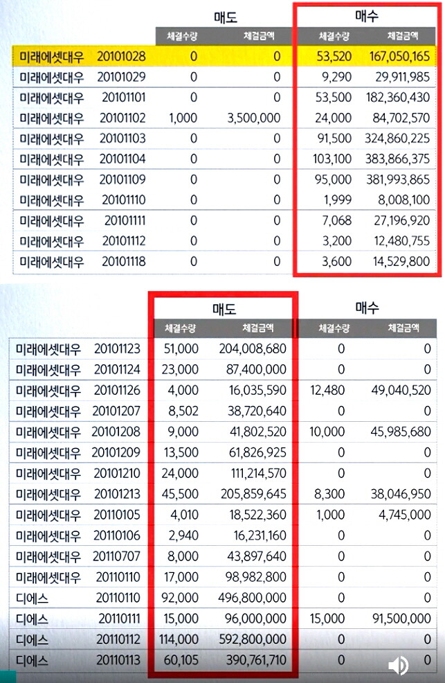 | ▲ 김건희 씨의 도이치모터스 주식 매수와 매도 체결 시기와 금액, 수량 |