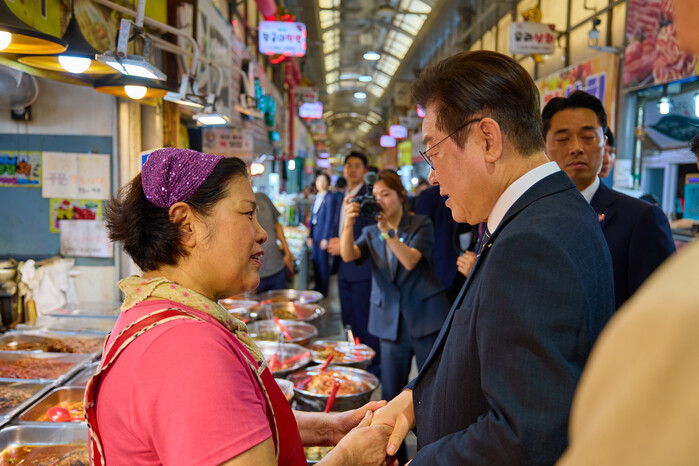 이 대통령은 김용범 정책실장, 하준경 경제성장수석 등과 함께 시장을 돌며 상인들에게 "영업 상황이 어떠한가"를 묻고 축산물 및 분식점에서 물가 동향을 파악했다. 특히, 분식집에서는 삶은 햇고구마, 떡볶이, 순대 등을 구매하여 동행한 참모들과 나누어 먹으며 현장 소통에 나섰다.