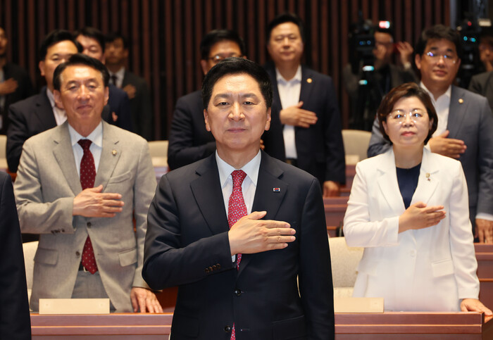 김 대표는 전날 국회 본회의에서 '노란봉투법' 부의, '이태원참사 진상규명 특별법' 패스트트랙 지정 등 쟁점 법안들을 강행 처리한 데 대해 "이미 민주당이 불치의 질병에 걸린 것 같다"고 비판했다.
