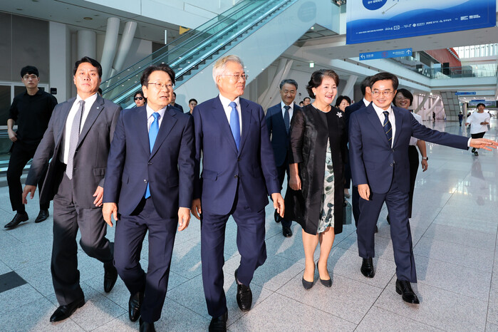 이날 광주에서 열린 9·19 평양공동선언 6주년 기념식에는 문 전 대통령과 우원식 국회의장, 조국혁신당 조국 대표, 김동연 경기지사, 강기정 광주시장, 이종석·김연철·이재정 전 통일부장관, 임종석 전 대통령 비서실장 등 500여명이 참석했다.