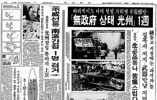 | ▲조국 전 법무부 장관이 17일 트윗에 올린 5.18 당시의 조선일보 |