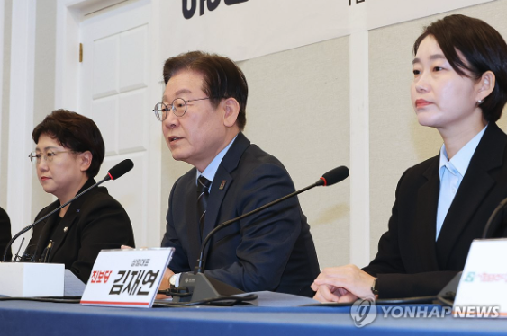 | ▲ 9일 野5당 비상시국 공동대응을 위한 원탁회의에서 발언하는 이재명 대표 (사진=연합뉴스) |